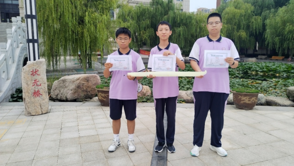 煙臺二中代表隊隊員:劉明軒、王政翔、張恒瑜參賽,獲得“船模競速”賽項高中組一等獎、“海洋知識競賽”賽項高中組一等獎的優(yōu)秀成績。