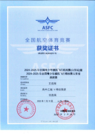 本屆大賽由國家體育總局航空無線電模型運動管理中心、中國航空運動協(xié)會等聯(lián)合主辦,吸引了全省33支隊伍、248名青少年選手同場競技。賽項全面考察選手的操作精度、應變能力和航空理論水平,既是技術(shù)的較量,更是心理素質(zhì)與團隊協(xié)作的綜合考驗。假期期間,煙臺二中代表隊在指導教師帶領(lǐng)下積極備賽,歷經(jīng)多輪精心訓練與細致打磨,最終榮獲省賽一等獎,并順利晉級國賽。