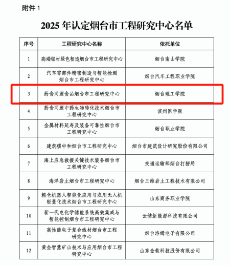 煙臺理工學(xué)院依托煙臺作為全國重要食品工業(yè)基地的區(qū)位優(yōu)勢,聚焦食品科學(xué)、生物工程、藥學(xué)等領(lǐng)域的交叉研究,深耕藥食同源特殊食品、藥食同源海洋生物資源、藥食同源食品加工新技術(shù)、新產(chǎn)品、新裝備研究,積累了一批具有應(yīng)用價值的科研成果。此次工程研究中心的獲批,正是我校多年深耕學(xué)科建設(shè)、持續(xù)推動產(chǎn)學(xué)研融合的重要體現(xiàn)。