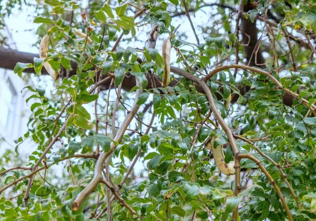 夏天,皂莢樹巨大的樹冠投下沁人心脾的濃蔭,畢業(yè)的學生們爭相在這里合影留念;秋天,扁舟狀的皂莢果掛滿了枝頭,新入學的小朋友好奇地詢問著它的名字與用途。