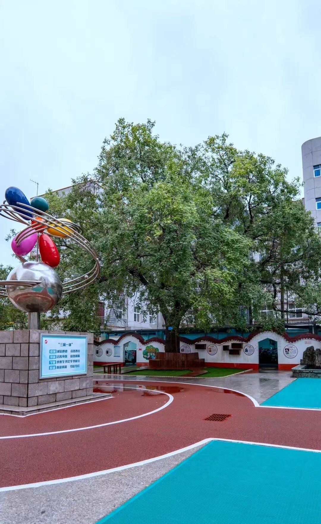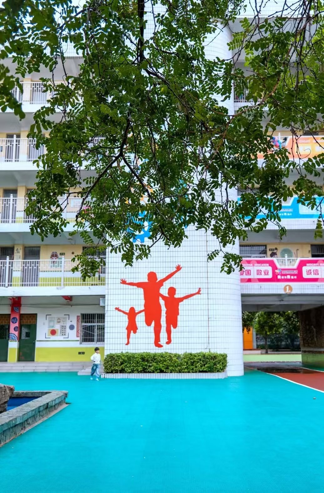 這棵長在淮河東路小學教學樓前的皂莢樹,高達20多米,枝干向四周舒展,像一把綠色的巨傘,守護著這一方充滿歡笑與夢想的天地。