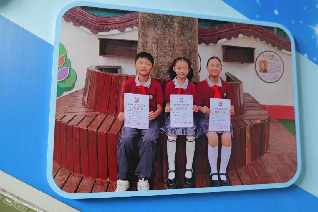 在學校的走廊上,有一張這樣的合影,三位學生手持獲獎證書坐在皂莢樹下,那時,他們剛剛在鄭州市青少年科技創(chuàng)新大賽中獲得一等獎。這棵皂莢樹,也是他們展示自己科技成果的起點。