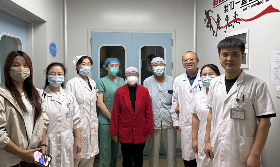 出院當(dāng)天,曾與張女士在治療期間相互激勵的徐女士,早早換上喜慶的紅色外套來到醫(yī)院。她與張女士的主管醫(yī)生、護士以及家屬一同等候,只為給張女士準(zhǔn)備一場特別的“歡送儀式”。