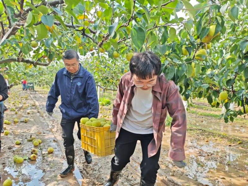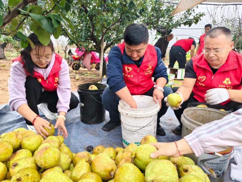 萊陽市益路同行志愿服務(wù)中心組織志愿者到照旺莊鎮(zhèn)蘆港村,幫助老年梨農(nóng)搶收萊陽梨。田間泥濘難行,水鞋常被粘掉,大家卻分工協(xié)作、干勁十足,切實解決了梨農(nóng)搶收難題。