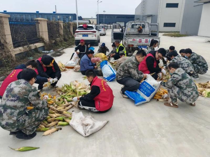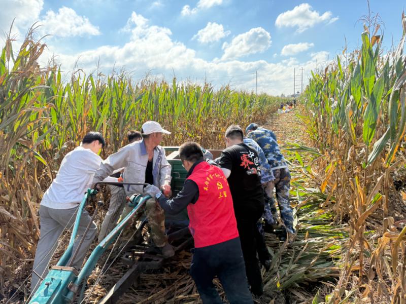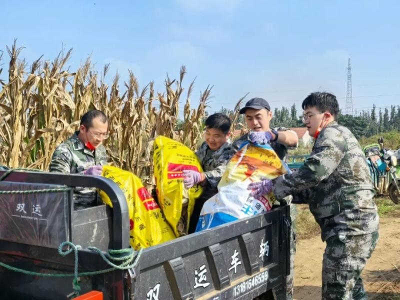 大夼鎮(zhèn)組織機關(guān)干部、志愿者組成“搶收突擊隊“,趕赴玉米地搶收。大家分工協(xié)作成為“人力傳送帶”,將玉米運回農(nóng)戶家中。