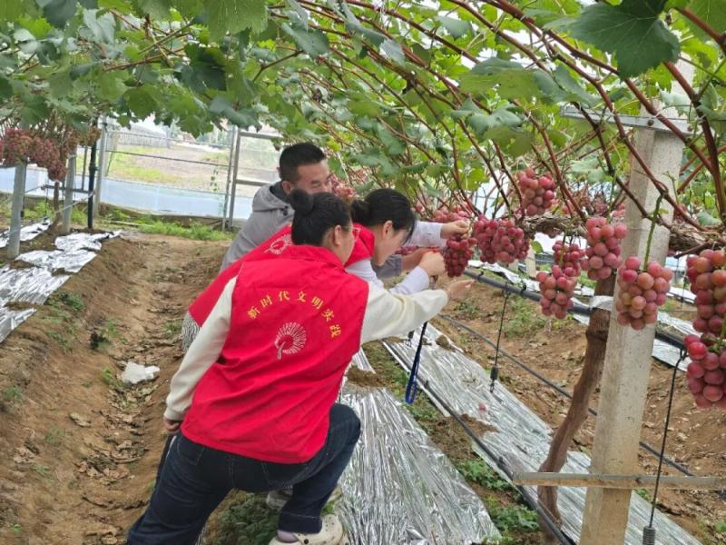 正是葡萄成熟季節(jié),近日卻因持續(xù)陰雨,部分農(nóng)戶面臨作物霉變風險。沐浴店鎮(zhèn)組織青年干部先鋒隊,開展“秋雨中接力,助農(nóng)搶秋收”文明實踐活動,以實際行動幫農(nóng)戶排憂解難。