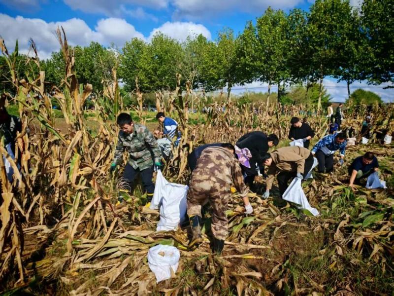 羊郡鎮(zhèn)針對秋收農(nóng)時緊、部分農(nóng)戶人手不足的情況,迅速組織青年志愿者隊伍前往東朱皋村助農(nóng)搶秋收。在玉米種植地里,志愿者們分工明確,有的彎腰掰玉米,有的快速裝袋,有的合力搬運,大家默契配合,用青春力量解農(nóng)憂,保障秋糧及時歸倉。