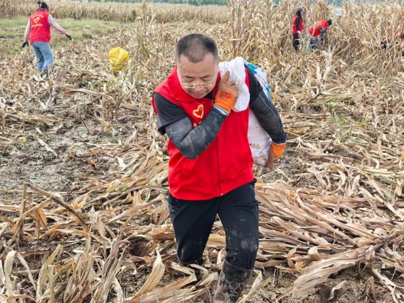 10月14日,萊陽市春雨志愿服務(wù)中心黨支部、春雨志愿服務(wù)中心聯(lián)合煙臺銀行黨員志愿者,與大夼鎮(zhèn)機關(guān)干部、工作人員一起組成“助農(nóng)搶收隊”,赴大夼鎮(zhèn)搶收玉米。雨后的玉米地泥濘,“志愿紅”們沖鋒在前,黨員發(fā)揮先鋒模范作用,與眾人默契配合,掰玉米、割秸稈、扛袋子、裝運輸,田間一片忙碌。